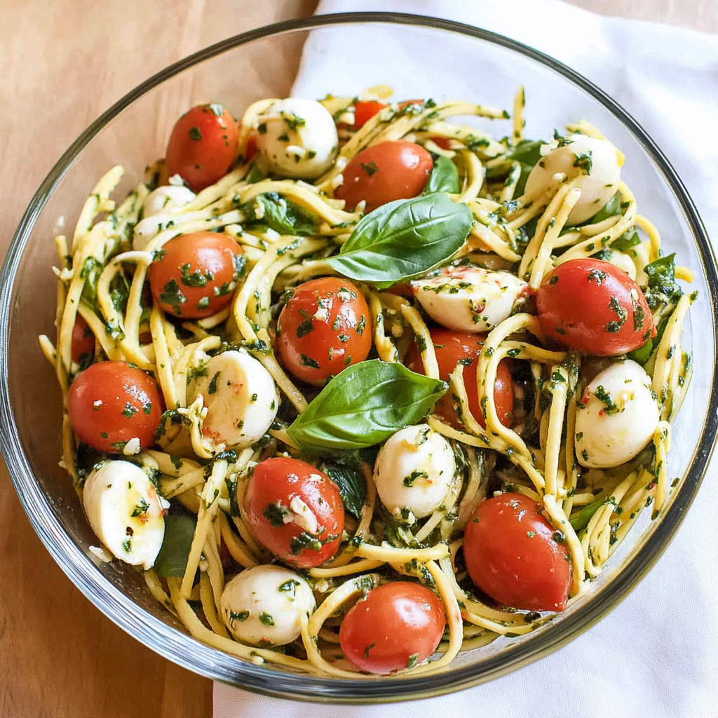 Caprese Zoodle Salad is a light, fresh, and low-carb take on the classic Italian Caprese salad. Instead of traditional pasta, this version uses spiralized zucchini “zoodles” as the base, offering a crisp texture and keeping things gluten-free. Paired with cherry tomatoes, mozzarella balls, and a balsamic vinaigrette, it’s the perfect summer dish or quick lunch.