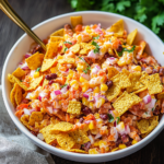 Fritos Chili Cheese Salad is a fun, crunchy, and flavorful dish that’s perfect for any occasion. Whether you’re serving it for a family dinner, potluck, or game day, this salad is sure to be a hit. Try it today and enjoy a delicious twist on classic chili flavors!