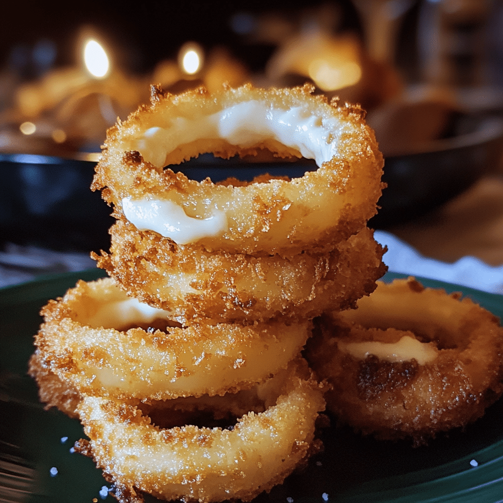 Mozzarella Stuffed Crispy Baked Onion Rings combine the irresistible crunch of a crispy onion ring with gooey, melted mozzarella in every bite. Baked to perfection, these cheesy delights are a lighter alternative to traditional fried versions and make an excellent snack, appetizer, or party treat.
