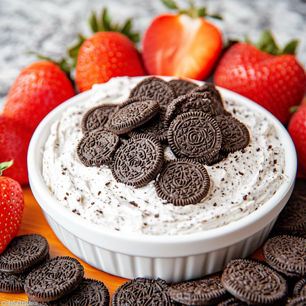 A rich and creamy no-bake Oreo dip made with cream cheese, whipped topping, and crushed Oreos—perfect for parties and sweet snacking.