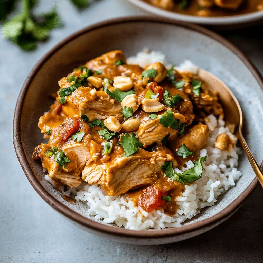 Slow Cooker Peanut Chicken is a delicious, easy-to-make dish that features tender, juicy chicken simmered in a creamy, rich peanut sauce. With hints of garlic, soy, and a touch of spice, this dish pairs wonderfully with rice or noodles and is great for busy weeknights!