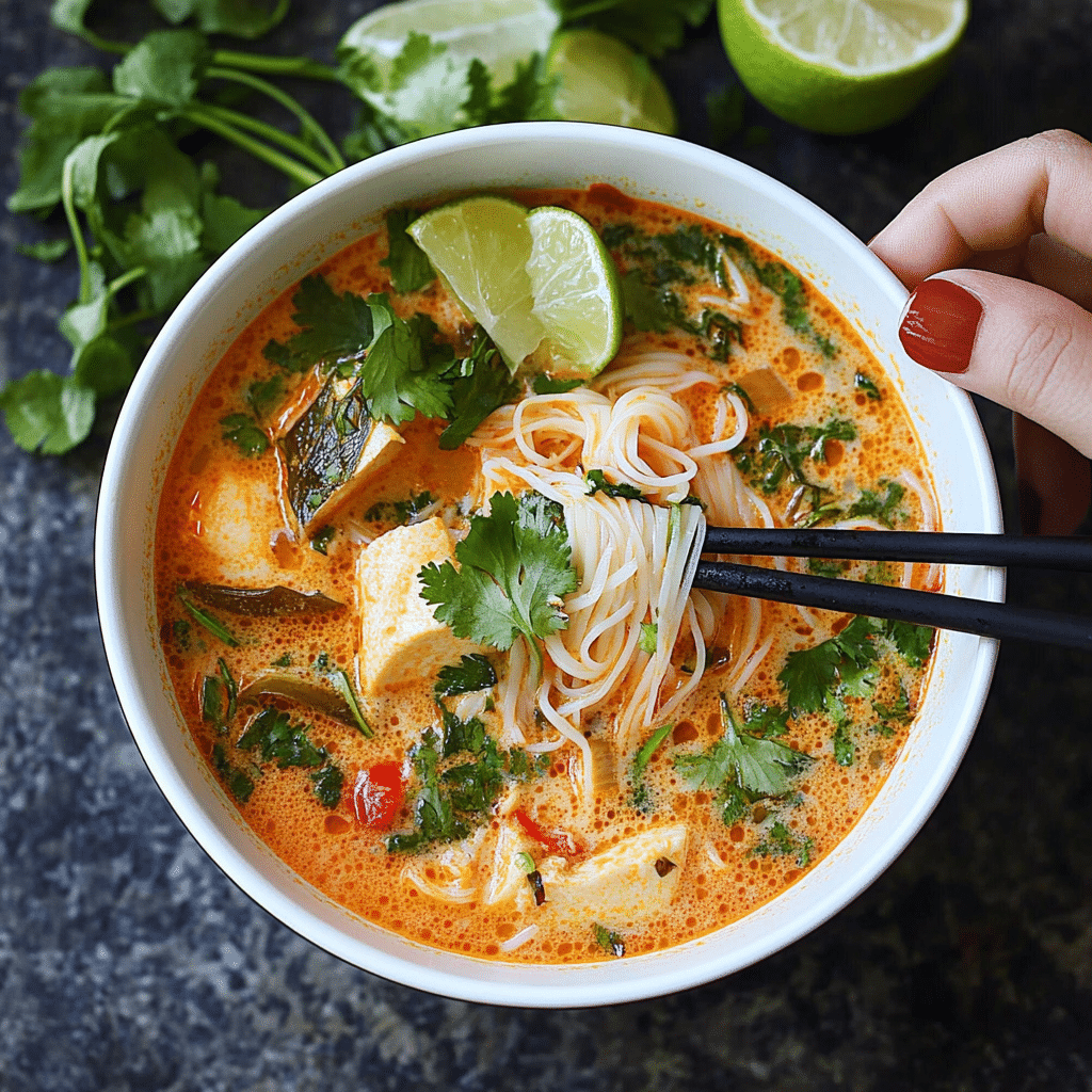 2. Can I make this recipe vegan? Absolutely! To make Thai Red Curry Noodle Soup vegan, simply swap the fish sauce for soy sauce or a vegan fish sauce alternative. Use vegetable broth instead of chicken broth and replace any animal-based protein (like chicken or shrimp) with tofu or additional vegetables.