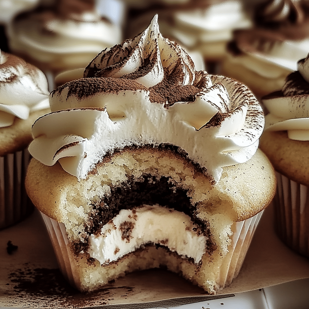 These Tiramisu Cupcakes are a delightful twist on the classic Italian dessert. Soft vanilla cupcakes are soaked in coffee, topped with mascarpone frosting, and dusted with cocoa powder for a deliciously decadent treat.